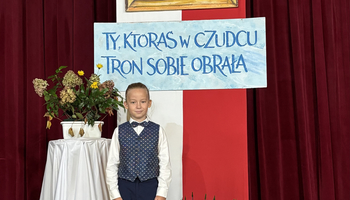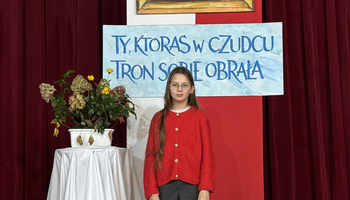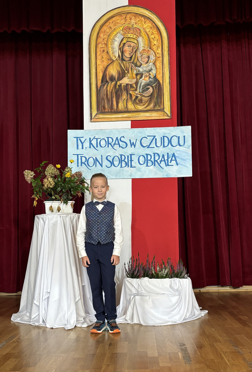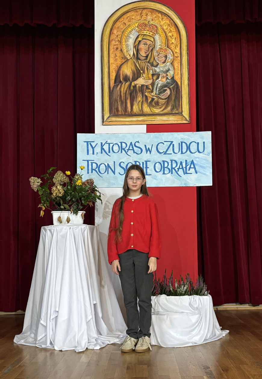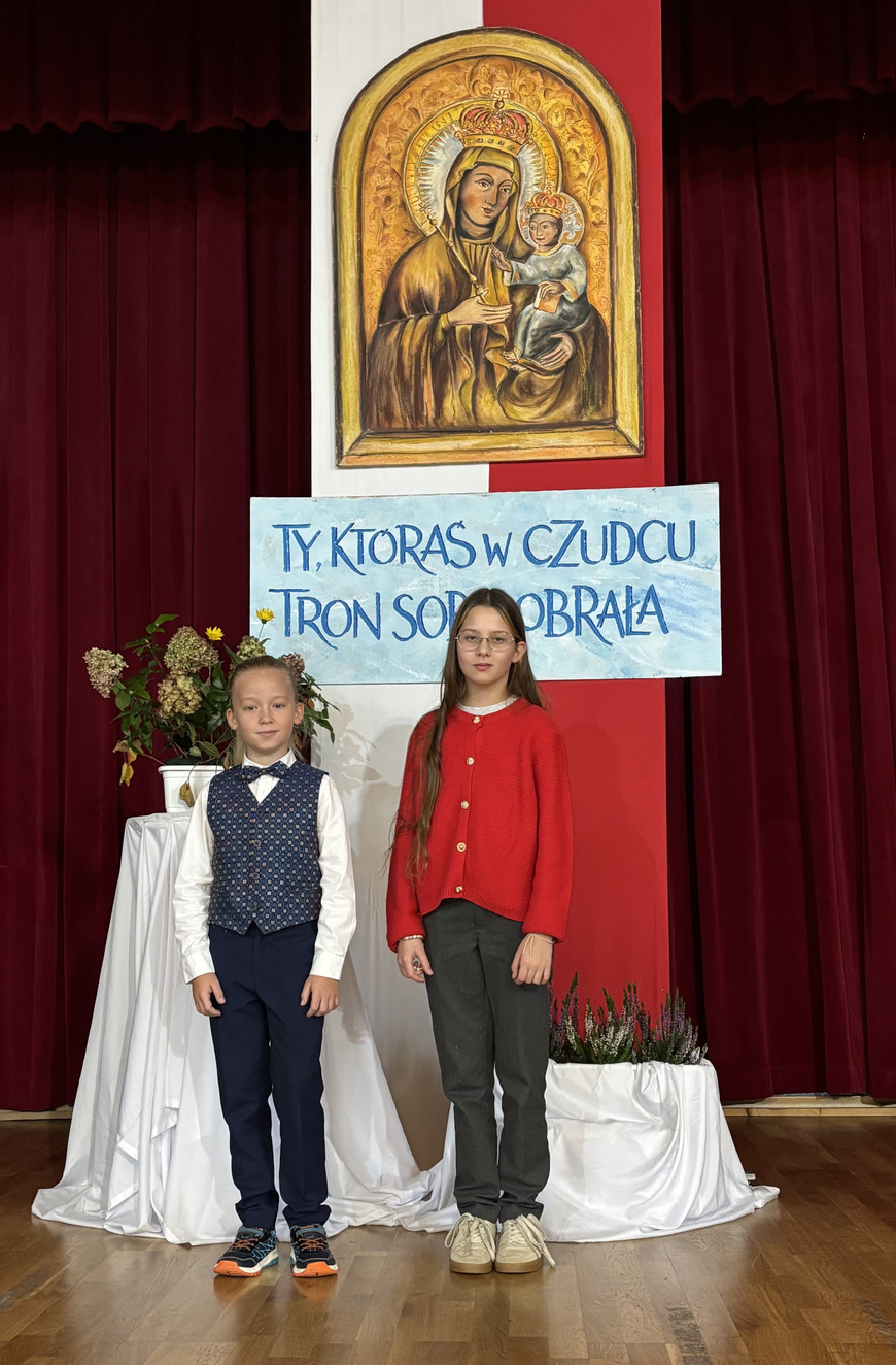 Nikodem z przejęciem i wzorcową kulturą słowa deklamował wiersz Marii Imeldy „Różańcowa Pani”, zaś Weronika swym delikatnym głosem zaśpiewała piosenkę Krystyny Żak „Matko o twarzy jak polska ziemia”.
